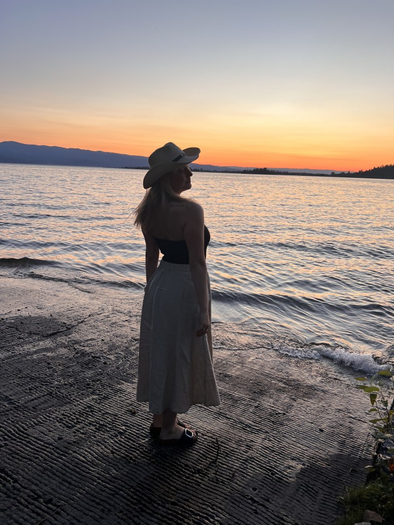 We got to our Airbnb in Bigfork after an extremely long (and stressful) travel day. I have super bad flight anxiety and since I decided to go so last minute, I had to fly by myself. The trip from Georgia to Bigfork required three separate plane rides, and after we landed in Bozeman, we rented a car and drove another four hours. As soon as we got to our Bnb, we headed out to eat (pictured here!) and watch the sunset.